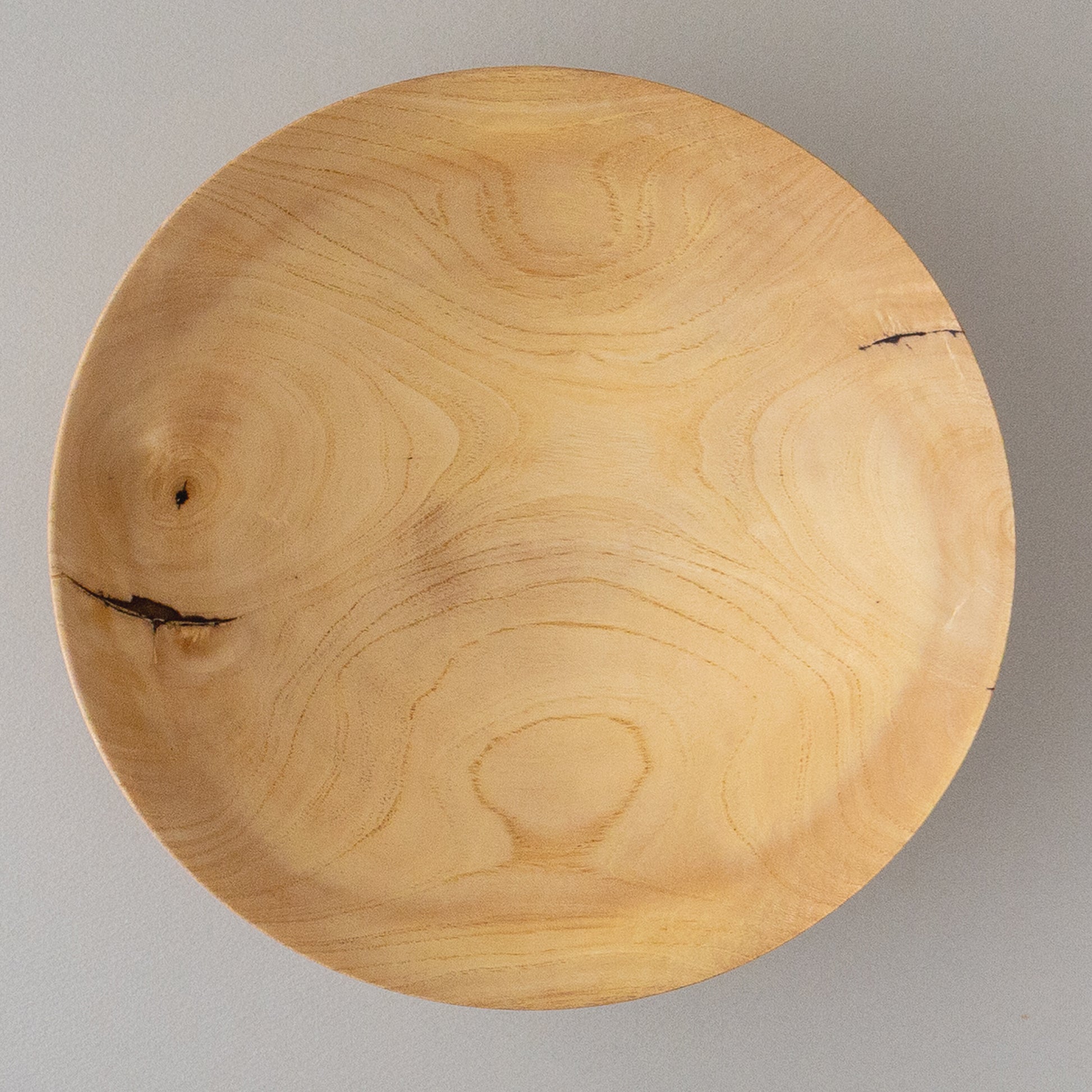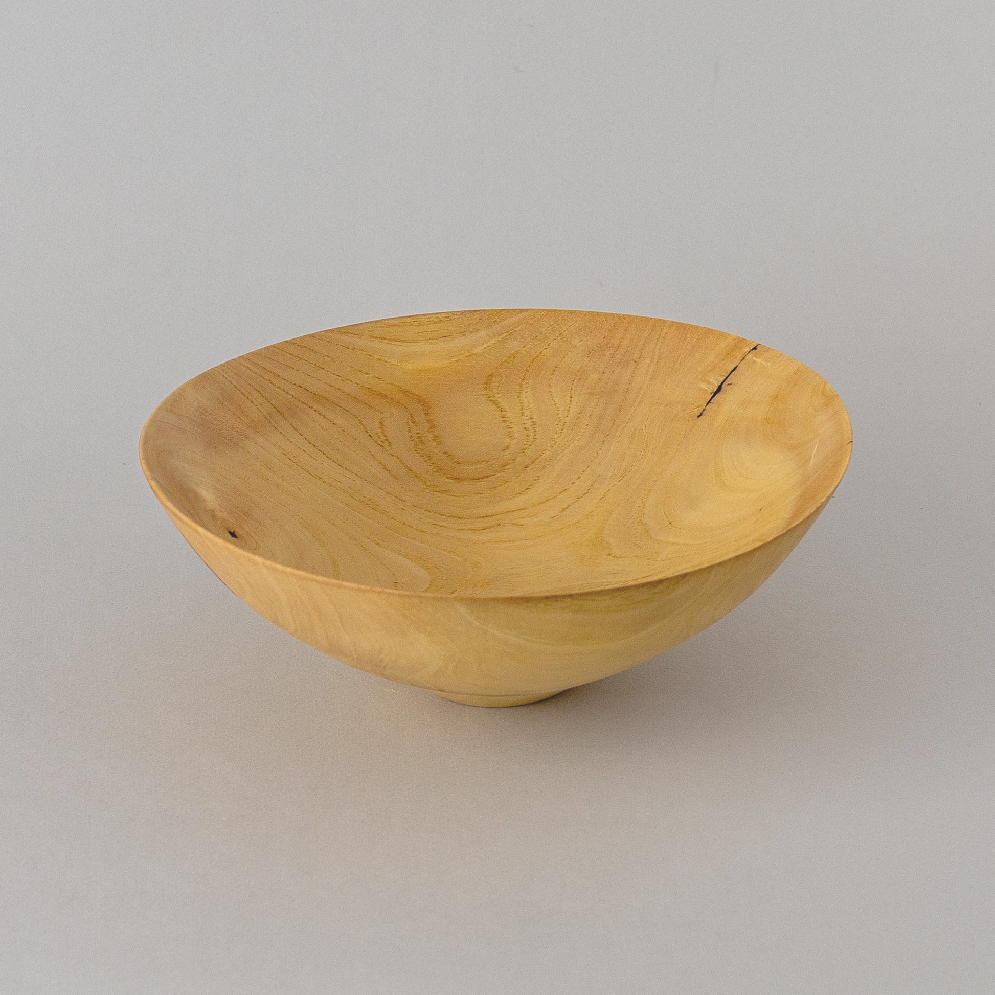 木目も穏やかなさらりとした手触りのチシャノキのボウル。深さもあり汁物など、幅広く使える
