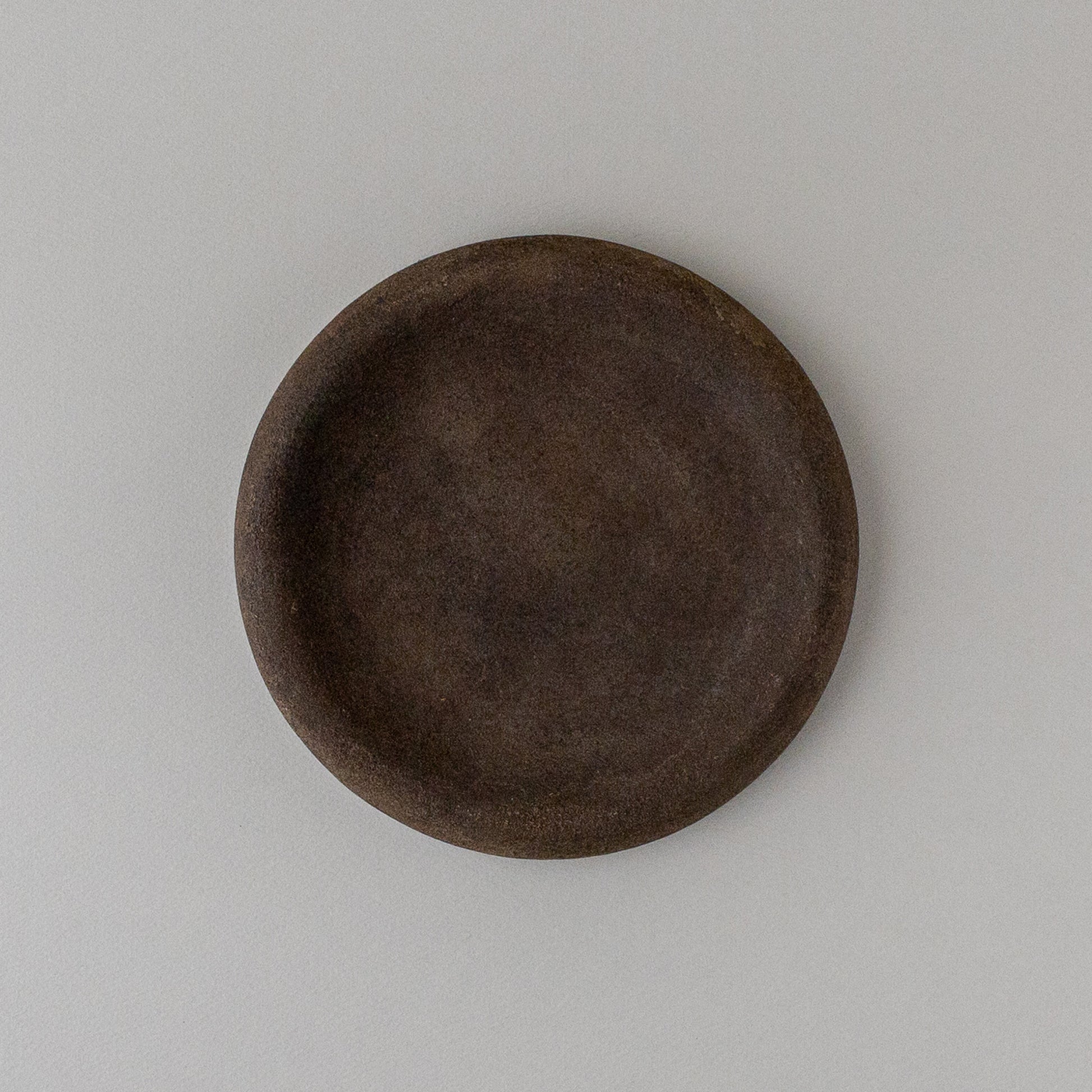 ひとつひとつ表情が異なる陶器のような質感の錆漆のプレート、材質は木なので非常に軽く使いやすい。表はフラット気味に裏は少し深みもあり用途によって使い分けできる。