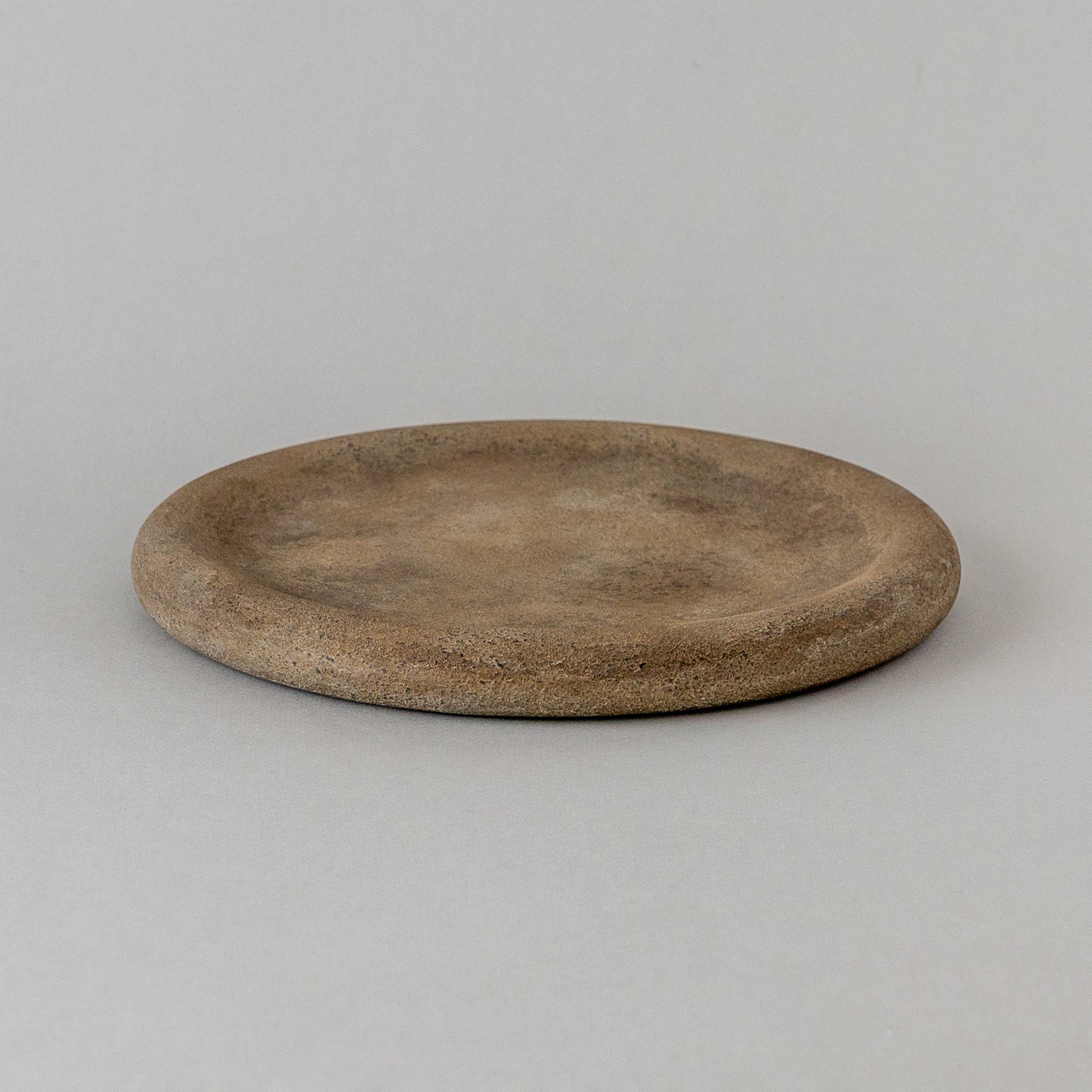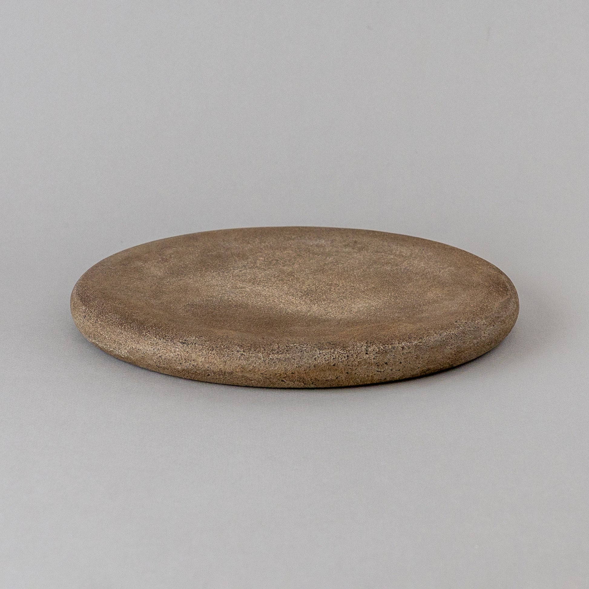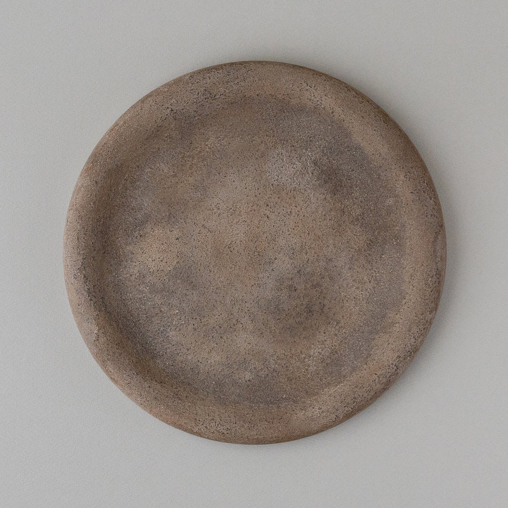 ひとつひとつ表情が異なる陶器のような質感の錆漆のプレート、材質は木なので非常に軽く使いやすい。表はフラット気味に裏は少し深みもあり用途によって使い分けできる。油物で色味も深くなり経年変化も楽しめる。