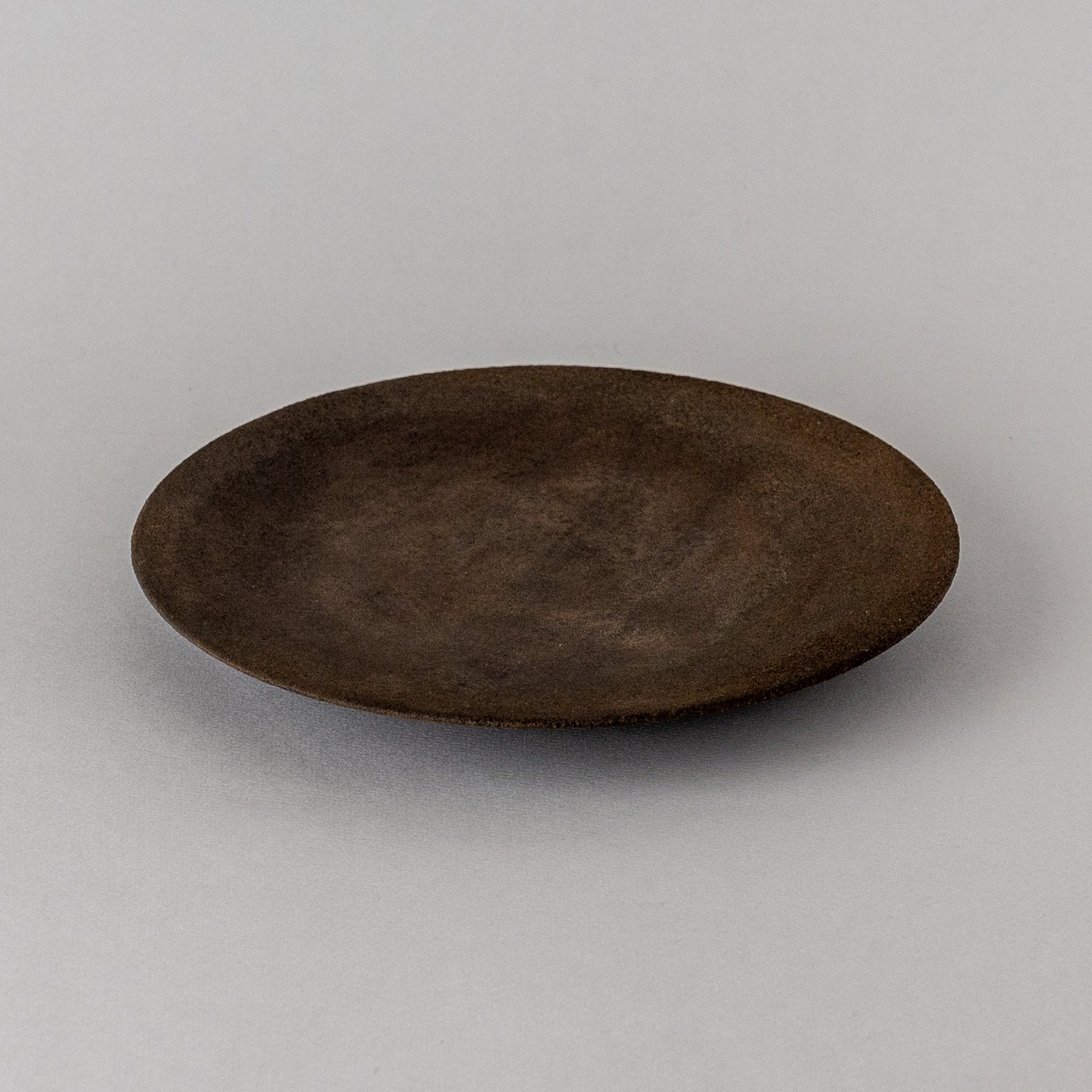 ひとつひとつ表情が異なる陶器のような質感の皿、錆漆は強度もあり、材質は木なので非常に軽く使いやすい。