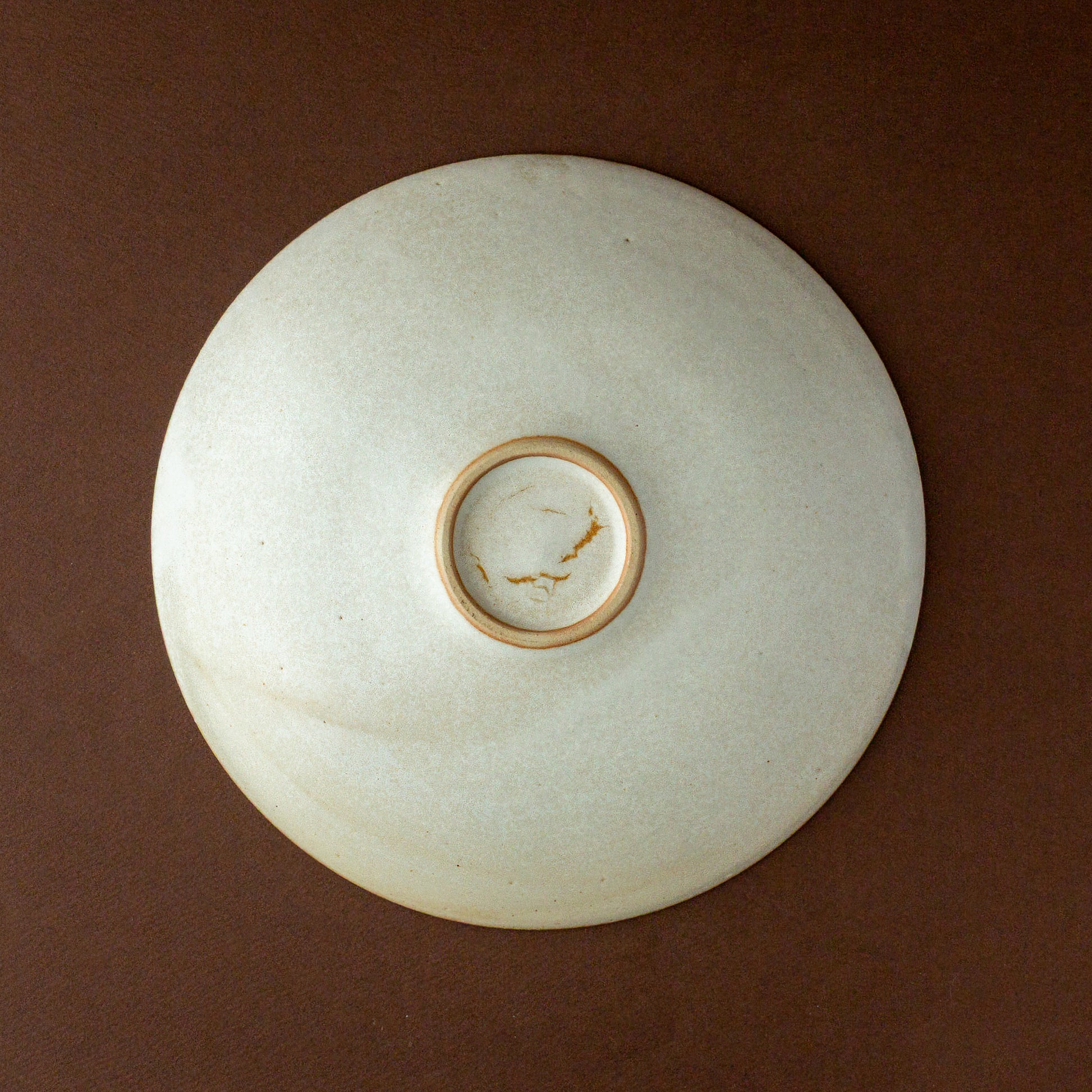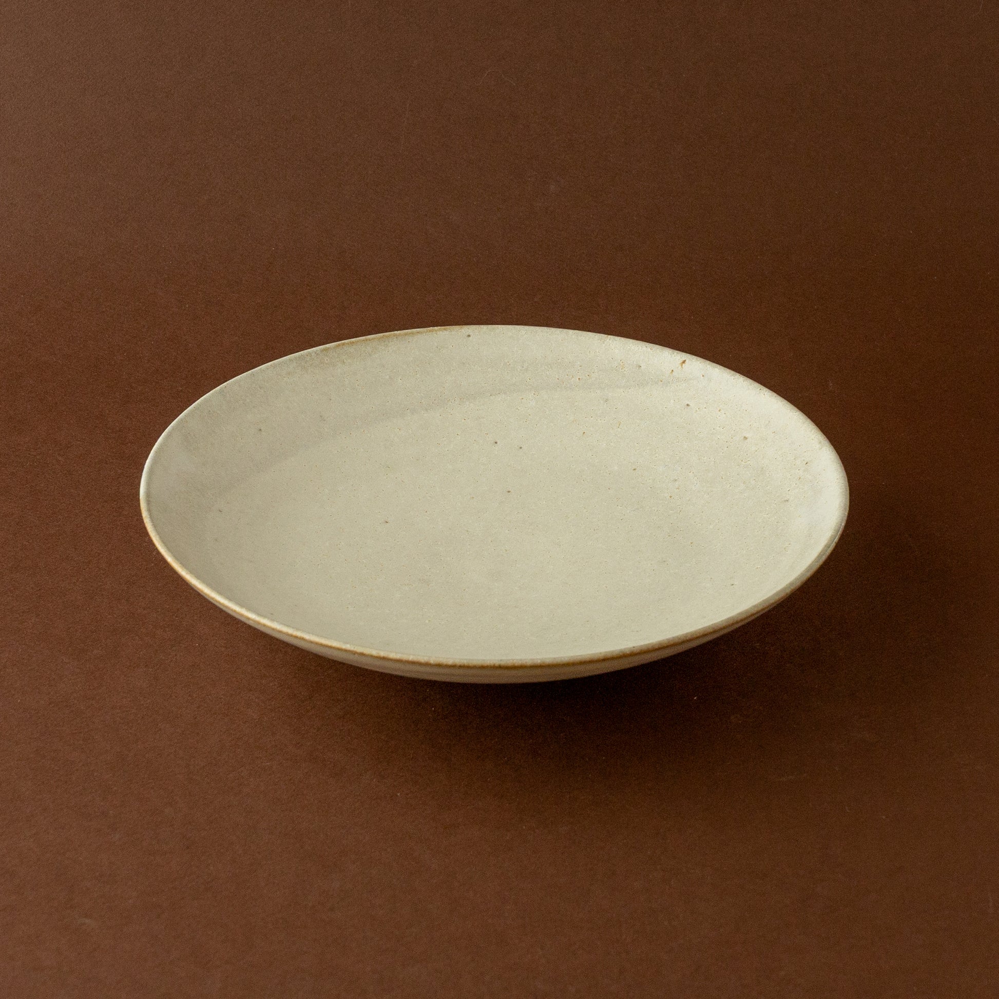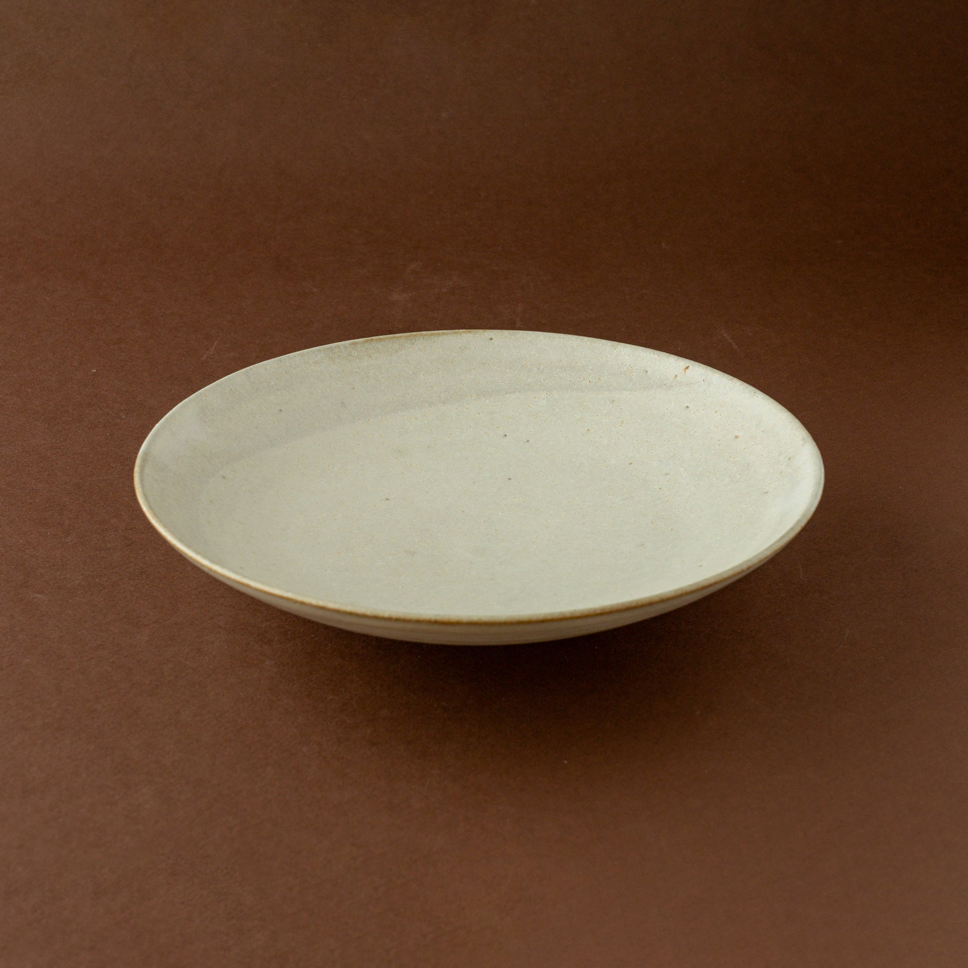 白く淡い柔らかな質感の釉薬。使い勝手の良い浅めのボウル。